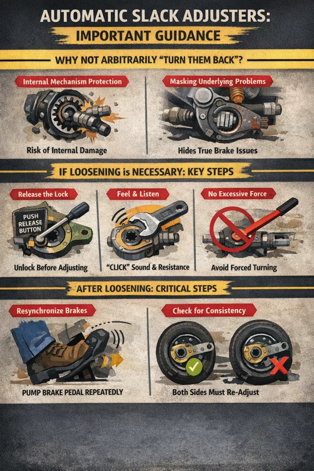 olup olmadığı otomatik gevşeklik ayarlayıcılar elle gevşetilebilmesi (genelde "geri döndürmek" olarak anılır) araç bakımında çok önemli bir detaydır.
