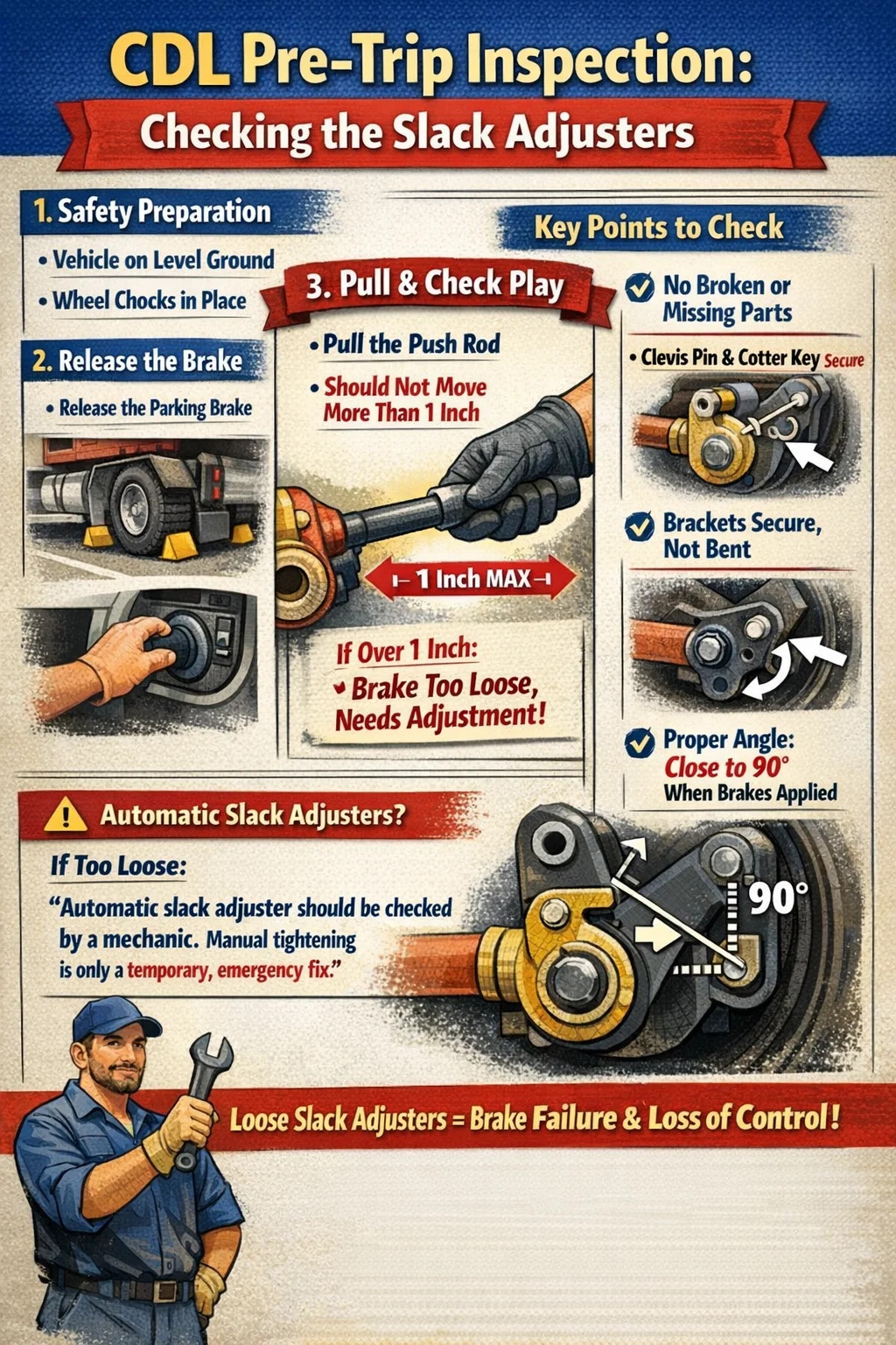 Ticari Sürücü Belgesi (CDL) alma sürecinde, yolculuk öncesi muayene çok önemli bir kısımdır ve bolluk ayarlayıcılarının muayenesi, sınav görevlilerinin en yakından odaklandığı konulardan biridir.