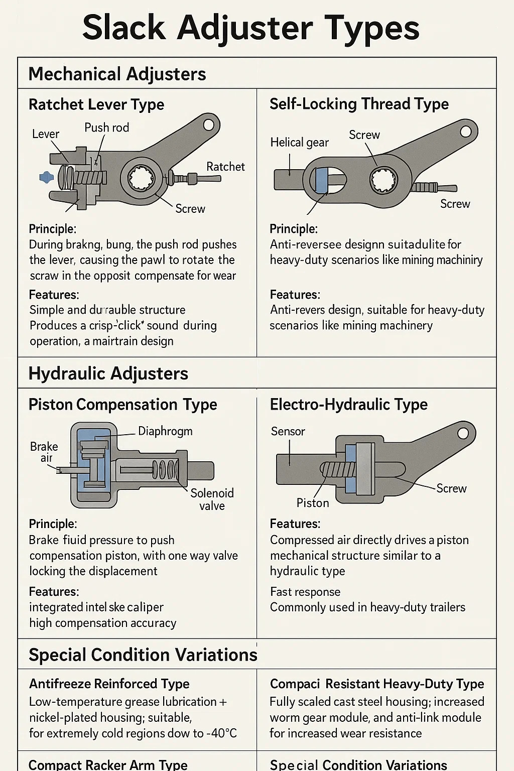 Prensip: Frenleme sırasında, itme çubuğu kolu iterek mandalın mandalı döndürmesine neden olur, bu da aşınma gevşekliğini telafi etmek için vidanın hafif bir şekilde uzamasına neden olur.